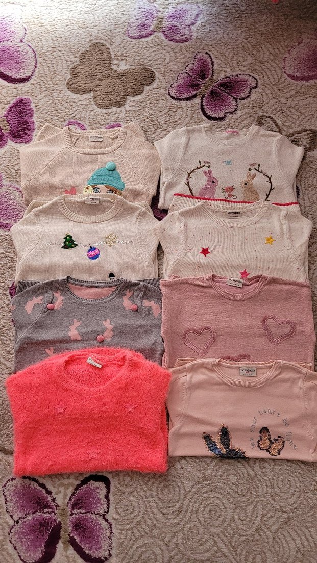 Pembe renkli, uzun kollu, nakış desenli, kız çocuk kazakları
