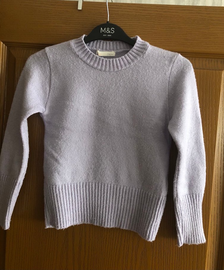 Birkaç kez giyildi.Bir sorunu yok.Lila rengi kız çocuk kazak