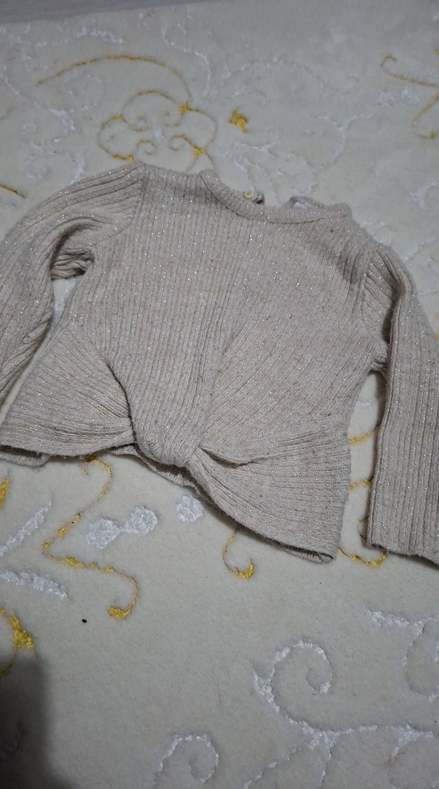 Bej renkli, örgü dokulu, boğazlı ve uzun kollu kadın kısa kazak. Rahat kesimiyle günlük kullanıma uygundur.