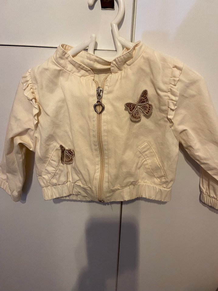 Kız Çocuk Kelebek Nakışlı Bej Ceket