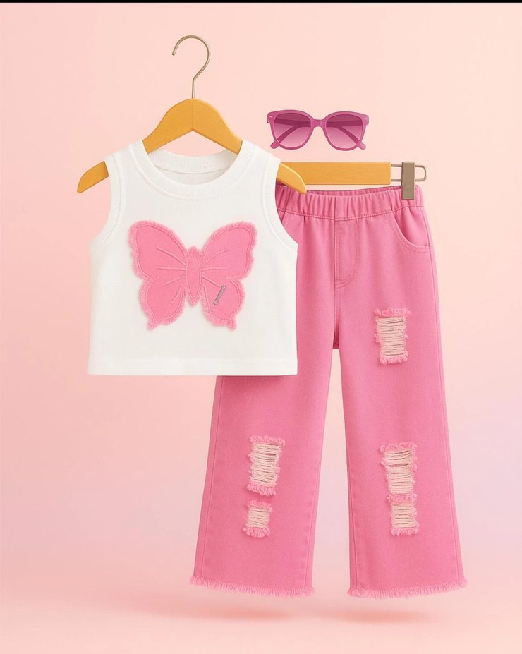 Kız Çocuk Kelebekli Tişört Pantolon 2 Li Takım