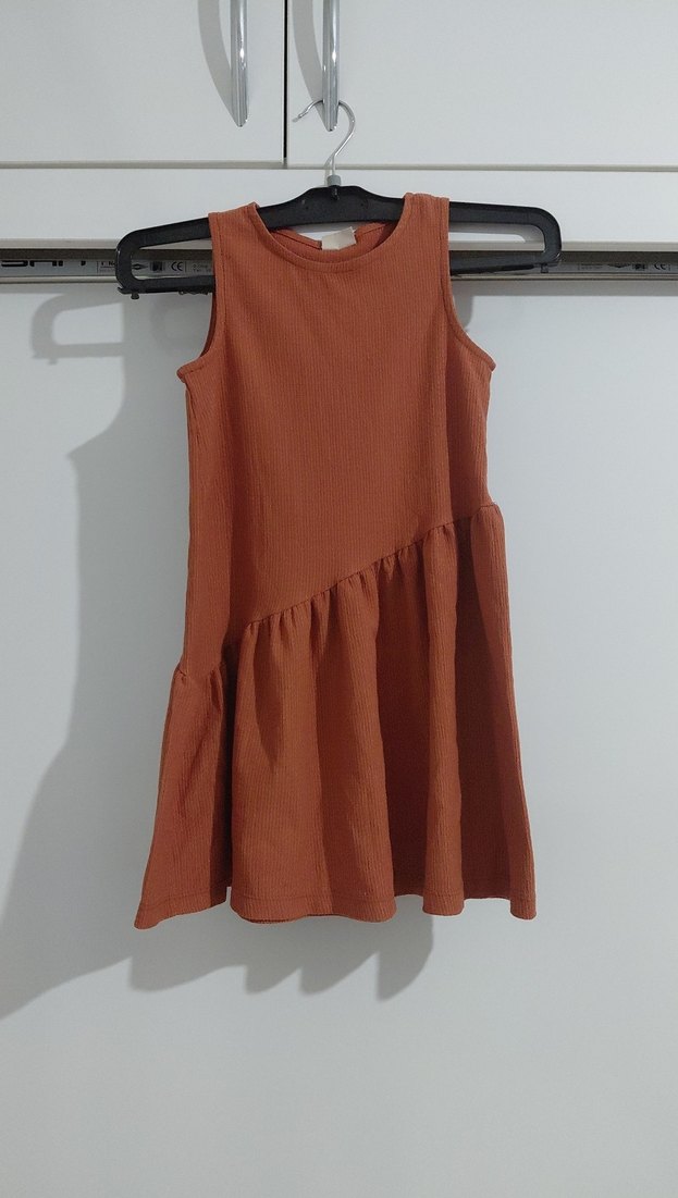 Kız Çocuk Keten Kolsuz Kahverengi Elbise - Görsel 1