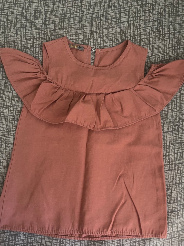 Omuz detaylı kız çocuk kısa kollu tişört kumaşı gömlek tarzında bir sorunu yok beş yaş