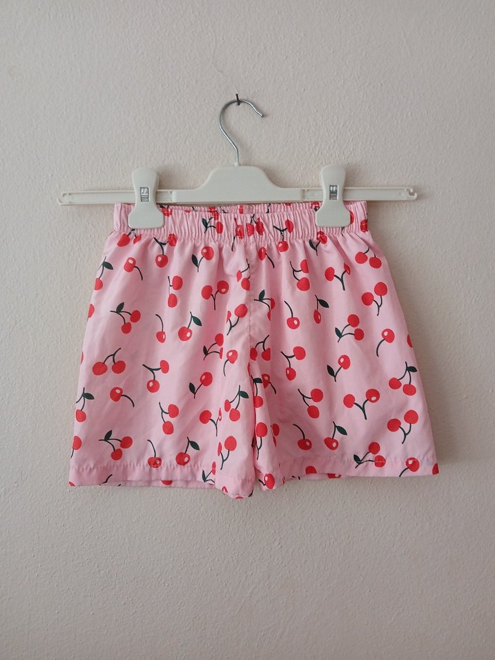 Yaş: 8-9 yaş Renk: Pembe Desen: Kiraz baskılı Beli lastikli, rahat kalıp,çabuk kurur Yaz aylarında günlük kullanım için ideal Temiz, kullanılmıştır beden ölçüsü bel tam ölçüm 52 cm ,basen 97 cm tek paça genişliği 50 cm uzunluk 30 cm