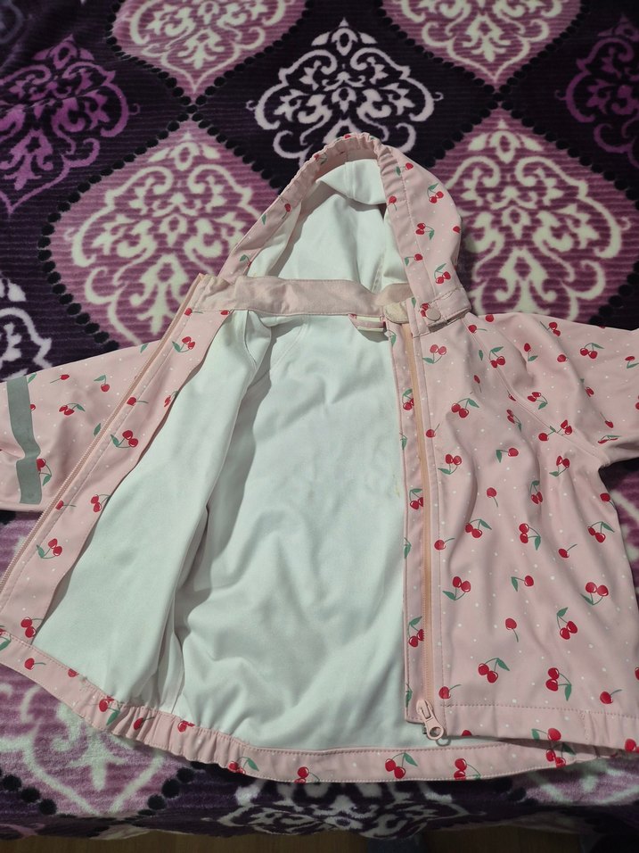 Kız Çocuk Kiraz Desenli Su Geçirmez Mont