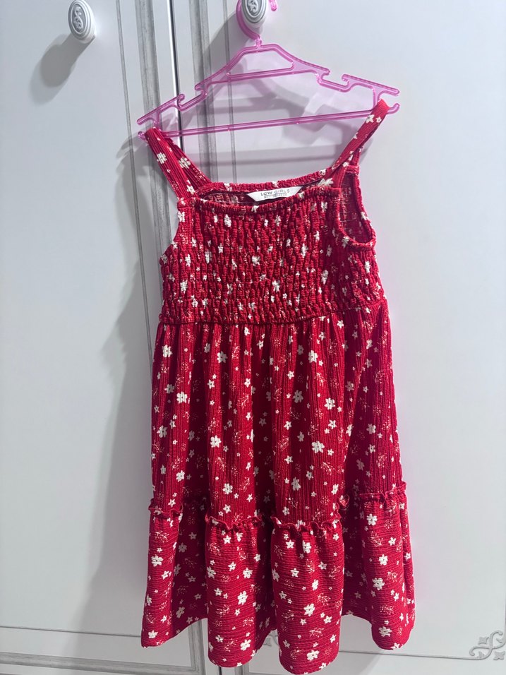 Kız Çocuk Kırmızı Askılı Fırfırlı Elbise