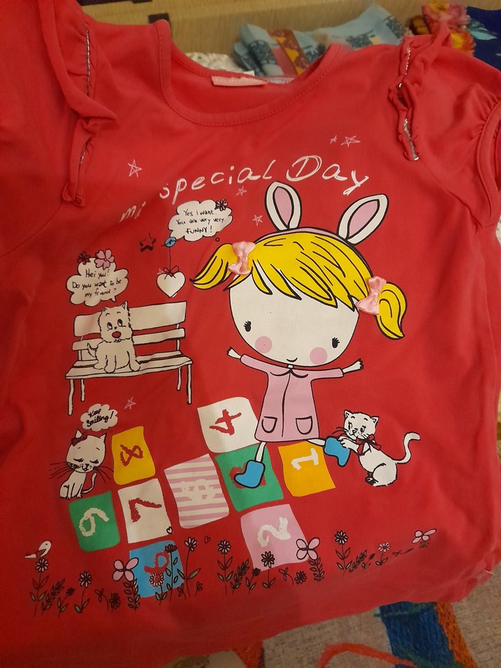 Kız Çocuk Kırmızı Baskılı Tişört 7-8 yaş lc waikiki