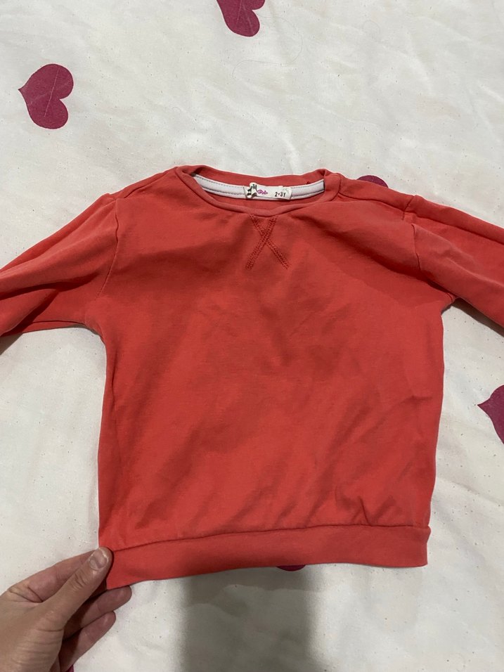 Kız çocuklar için bisiklet yaka, uzun kollu, vücuda oturan kesimde, yumuşak ve sıcak kumaştan yapılmış parlak kırmızı sweatshirt.