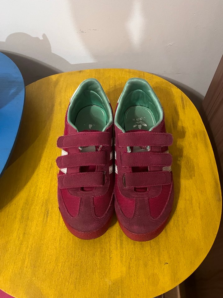Kız çocukları için kırmızı renkte, cırt cırtlı ve kauçuk tabanlı spor ayakkabılar. Renkli ve desensiz sade bir sokak stili sunar.