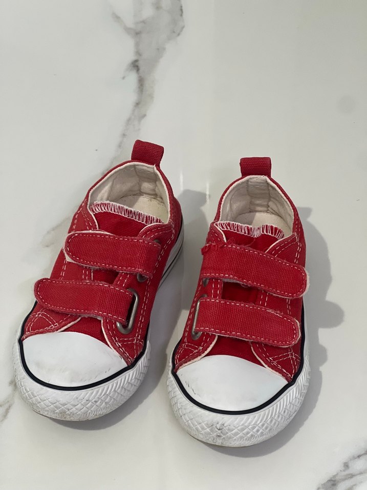 Kız çocuklar için kırmızı cırt cırtlı, kauçuk tabanlı spor ayakkabı. Düz ve basic tarzda, gündelik kullanıma uygun renkli model. Işıkları bazen çalışıyor.