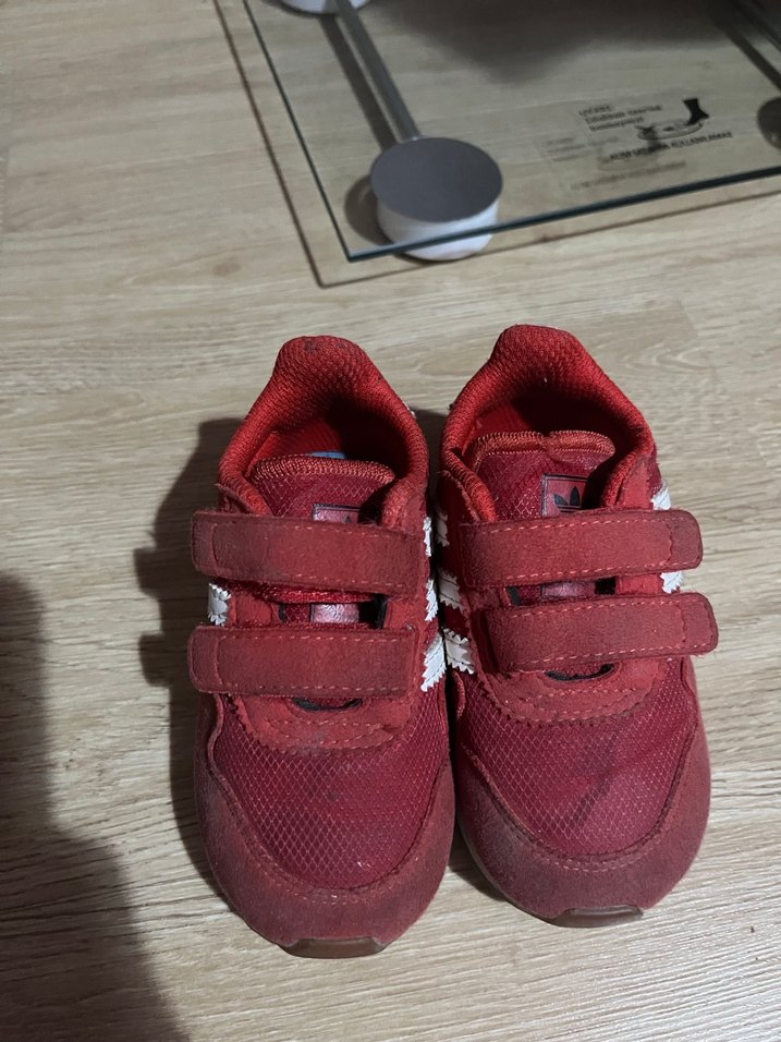 Kırmızı renkli, cırt cırtlı ve kauçuk tabanlı kız çocuk spor ayakkabısı, sade ve renkli sokak stili için uygundur. Yıkanması yeterli temiz üründür yırtığı vs yoktur orijinaldir