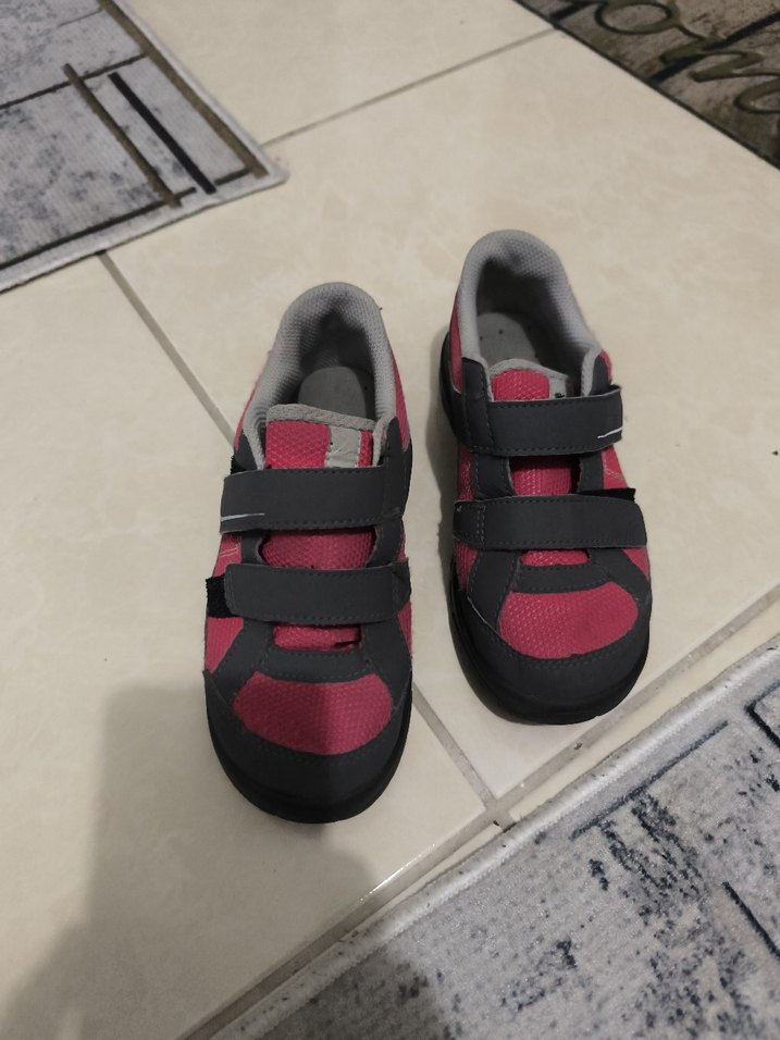 Koyu kırmızı renkli, cırt cırtlı bantlara ve kauçuk tabana sahip kız çocuk spor ayakkabısı, sokak modası tarzında.