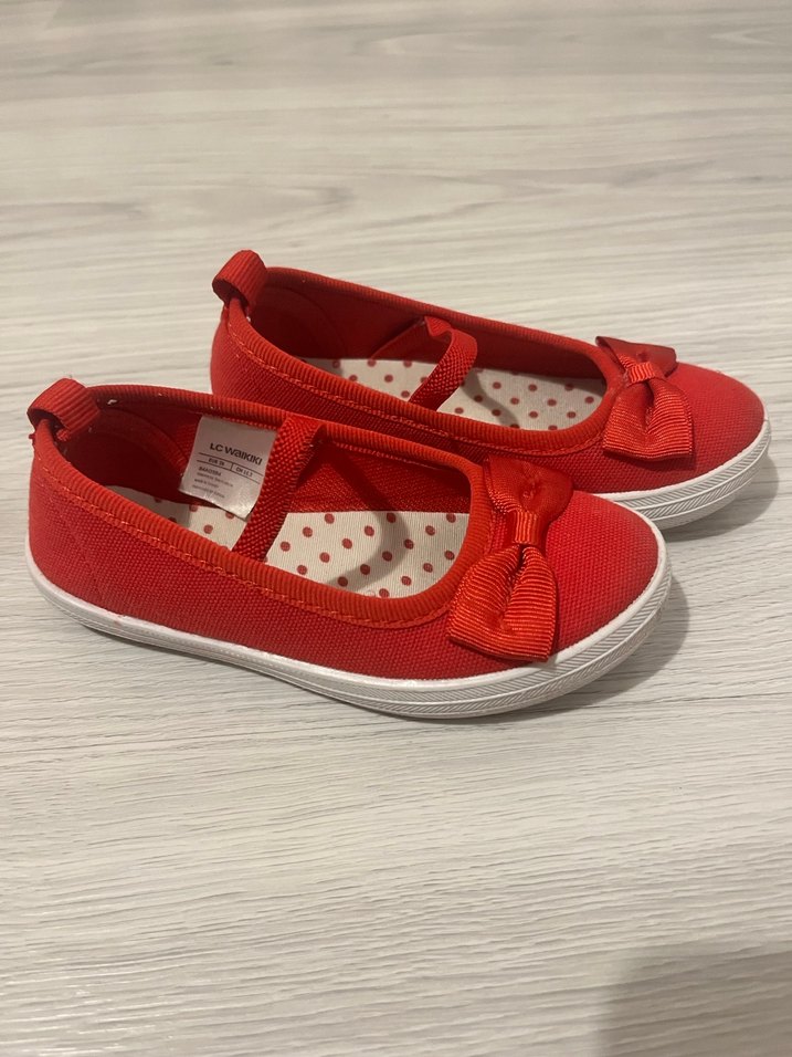 Kız çocukları için kırmızı renkli, cırt cırtlı ve kauçuk tabanlı basit tasarımlı babet ayakkabılar. Fiyonk detayı vardır, sokak stiline uygundur.