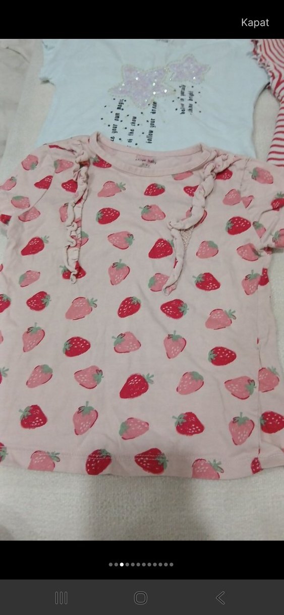 Kırmızı beyaz çizgili, uzun kollu ve kayık yaka kız çocuk tişörtü. Pamuklu, örme dokulu kumaştan üretilmiş, kalıplı kesime sahip, küçük kalp detayı içerir. 3/4 yaş. sadece bir üründe hafif leke var foto da mevcut