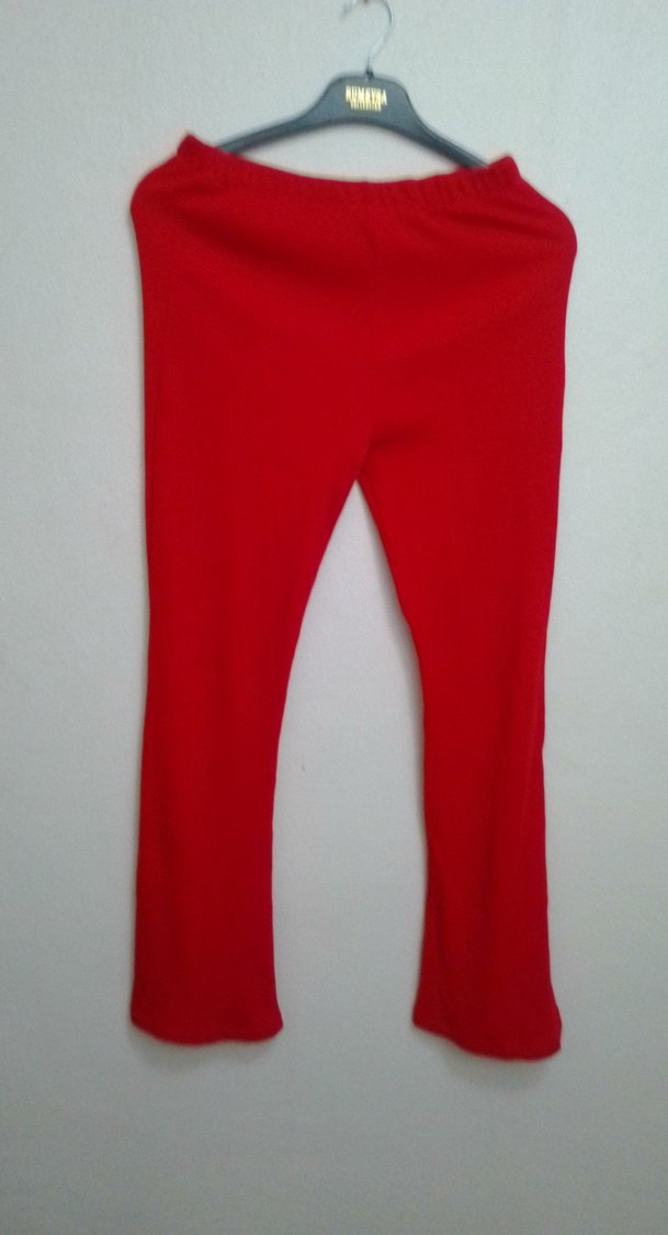 Kız çocukları için dar kesim, yumuşak ve sıcak kumaştan yapılmış kırmızı pantolon. Sokak stili için sade ve renkli bir görünüm sunar.