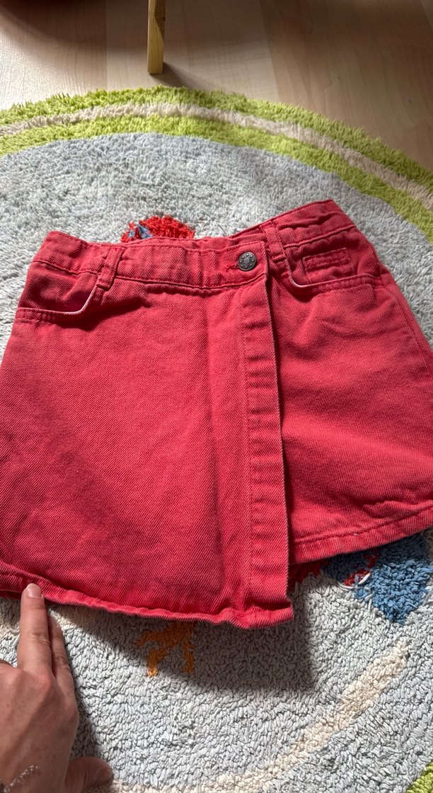 Kız Çocuk Kırmızı Düğmeli Kot Etek