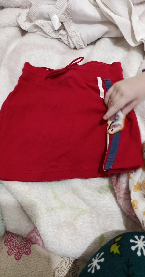 Kız çocuklar için kırmızı renkli, düğmeli ve nakışlı detaylara sahip, yumuşak ve sıcak kumaştan üretilmiş dar kesim etek. rengi soluk bordo gibi