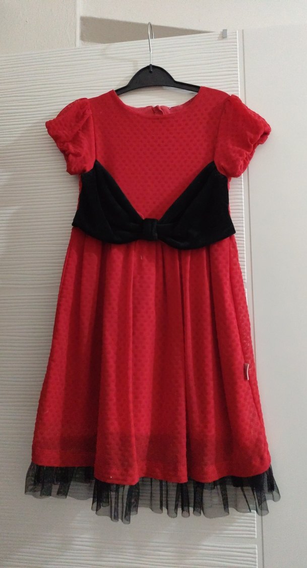 kırmızı ve siyah bel detaylı kız çocuk elbisesi.