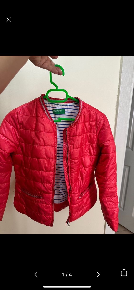 Kız Çocuk Kırmızı Fermuarlı İnce Mont Benetton