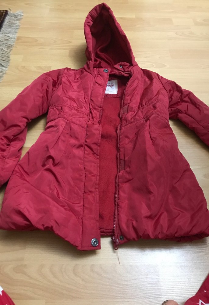 Parlak kırmızı renkli, fermuarlı ve kapüşonlu kız çocuk montu. Notlu yaka ve yumuşak, sıcak kumaştan, dar kesim ve sokak stilinde.