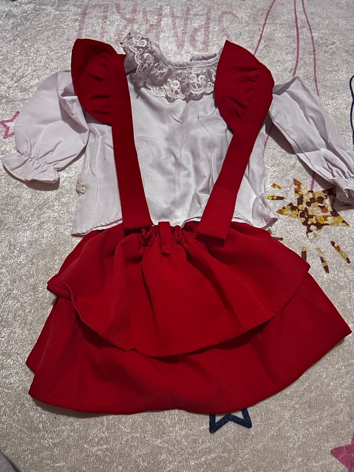 Kız Çocuk Kırmızı Fırfırlı Askılı Elbise