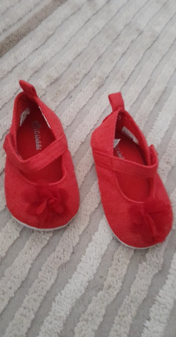 Kırmızı renkli kız çocuk babet ayakkabılar, üzerinde fırfır detayı ve kauçuk tabanlıdır. Düz ve sade tasarıma sahiptir, bantlıdır. Rahat ve renkli.sayili kullanildi