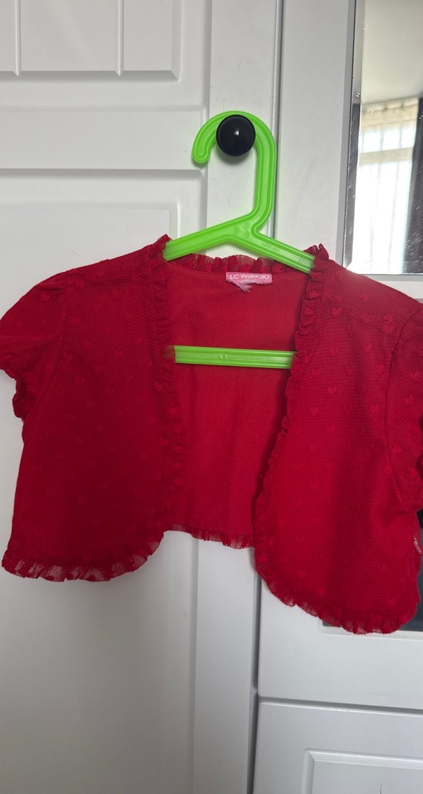 Kız Çocuk Kırmızı Fırfırlı Bolero