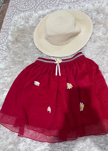 Kız çocuklar için bol kesim, fırfırlı kırmızı etek. Gri lastikli bel bandı ve yumuşak sentetik kumaştan üretilmiştir. Sokak stili için uygundur. Şapkayla beraber satışta şapka lcw Waikiki üstündeki süsü koptu yoksa iyi durumda .