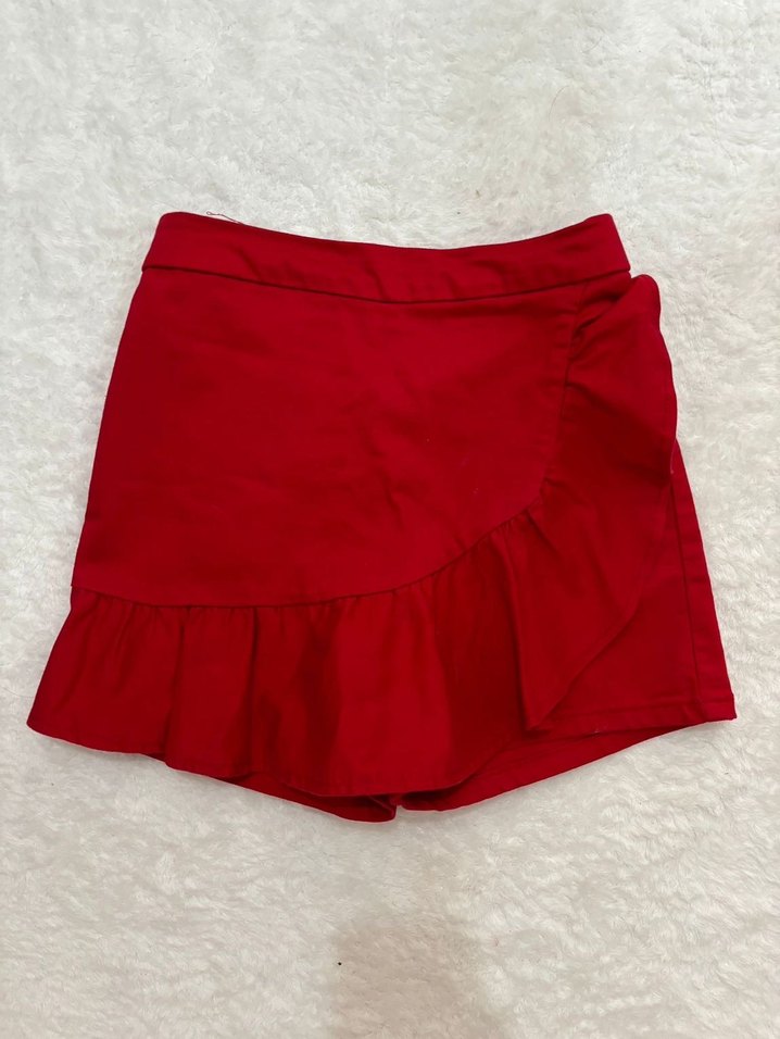 Kız çocuklar için kırmızı, fırfırlı ve dar kesim etek. Yumuşak ve sıcak dokulu kumaştan yapılmış, sokak stili için uygun. 11 yaş