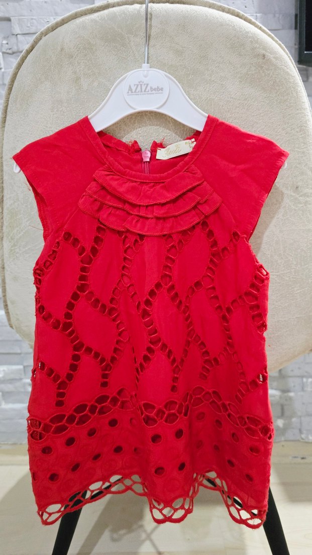 Kız Çocuk Kırmızı Fırfırlı Kolsuz Elbise