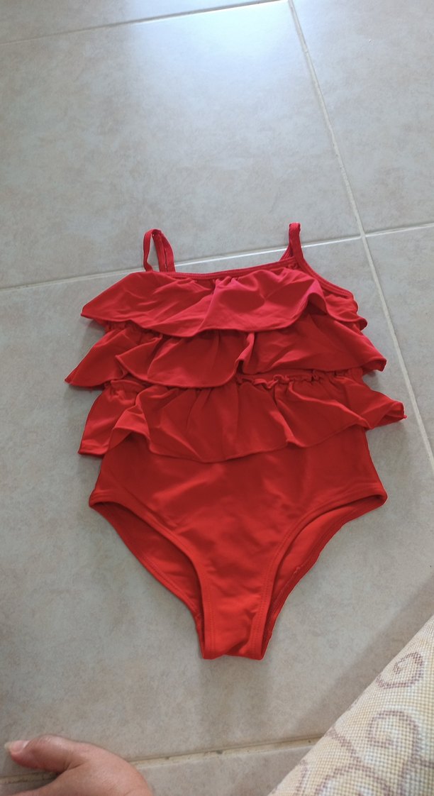 Kız çocukları için kırmızı, askılı ve kat kat fırfırlı mayo, renkli ve bohem tarzıyla plajda rahat kullanım sağlar. 2 defa giyildi sadece Almanya'dan alindi