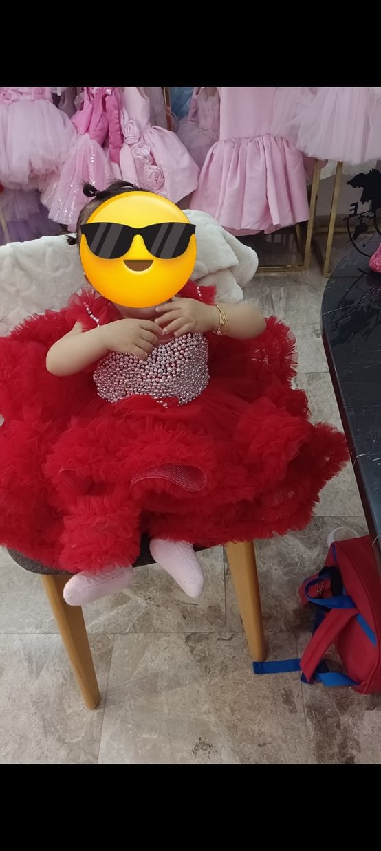 Kız çocuk için el işlemesi incili kırmızu renkli fırfırlı elbise
