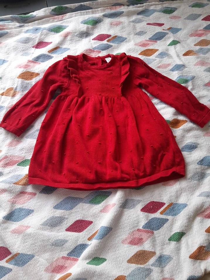 Kız çocuk için uzun kollu, kruvaze yakalı, fırfırlı detaylı kırmızı elbisedir. Yumuşak ve sıcak hisli kumaştan, bol kesim ve sade tasarıma sahiptir. sadece 1 kez giyildi.12 18 ay