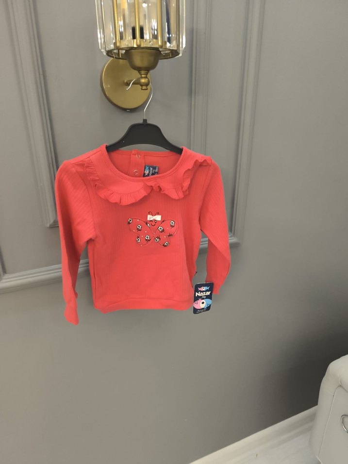 Kız Çocuk Kırmızı Fırfırlı Uzun Kollu Sweatshirt