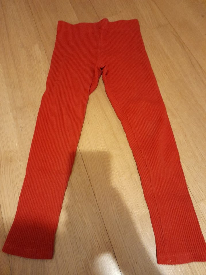Kız çocukları için elastik bel bandına sahip, yumuşak ve sıcak dokulu kırmızı fitilli tayt. Sokak stili için uygun. 8 /9 yaş uyumlu