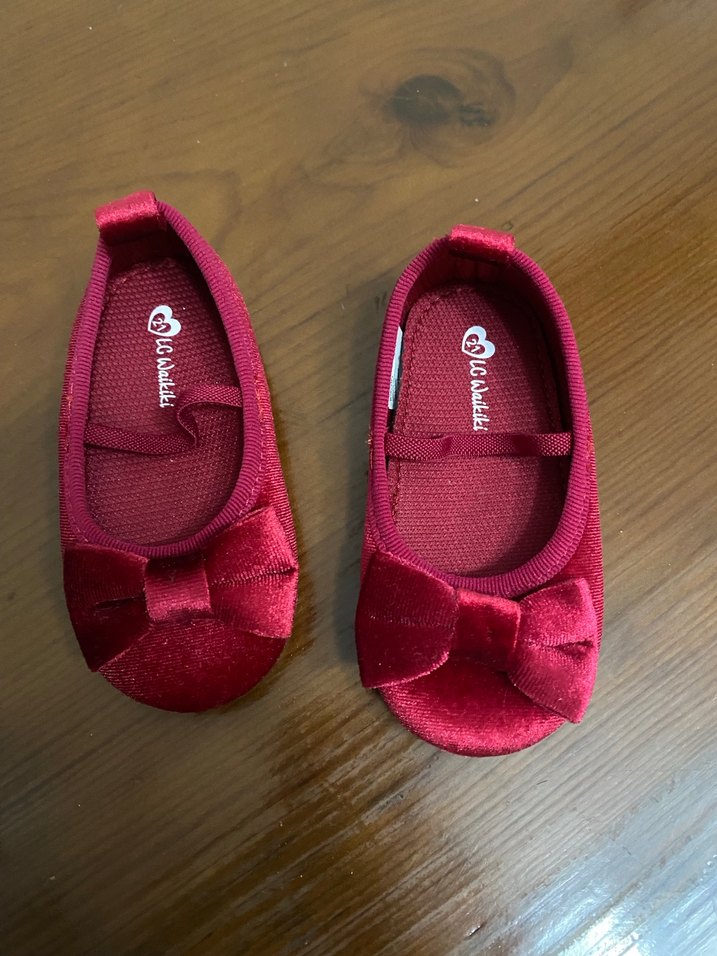 Koyu kırmızı renkte, ön kısmında fiyonk detayı bulunan kız çocuk babeti. Kızımın ayakları etli olduğu için hiç kullanılmadı.