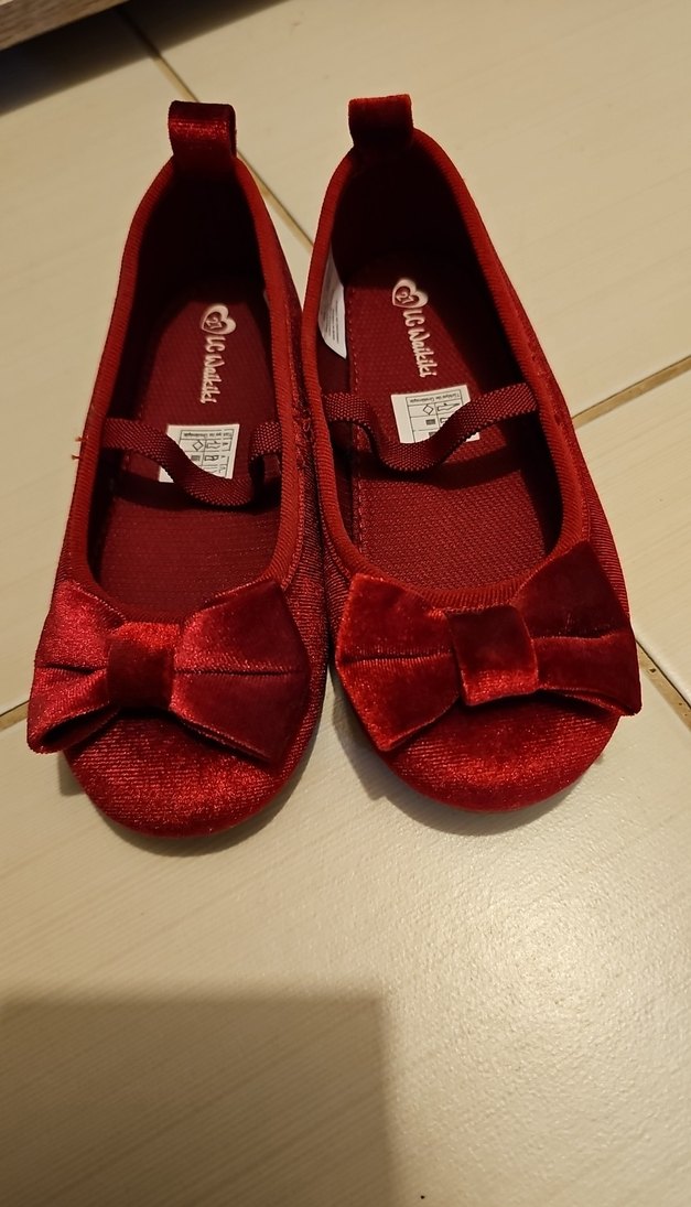 Koyu kırmızı, fiyonk detaylı kız çocuk babetleri. Kauçuk malzemeden üretilmiş, klasik ve şık sokak stili için uygun.temiz 27 no bir kez giyildi