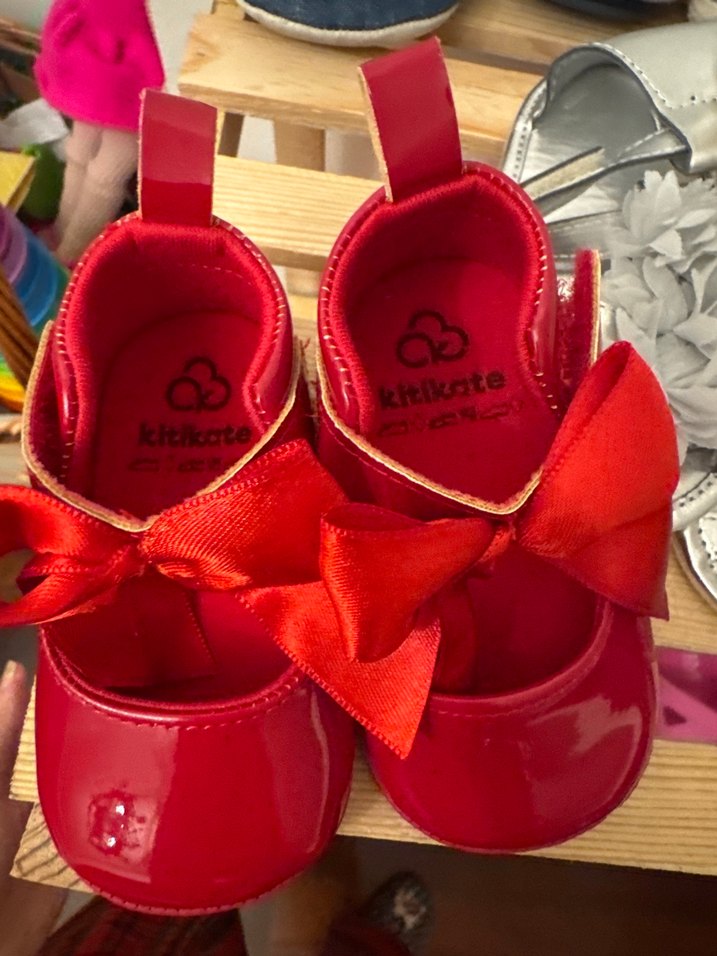 Kız çocukları için kırmızı renkte, fiyonk detaylı kauçuk babetler. Renkli ve rahat sokak stili için uygun, iç kısmında baskılı desen bulunur. Kitikate kırmızı ayakkabı. Hiç giyilmedi tertemiz.