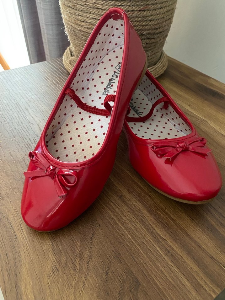 Kız Çocuk Kırmızı Fiyonk Detaylı Babet