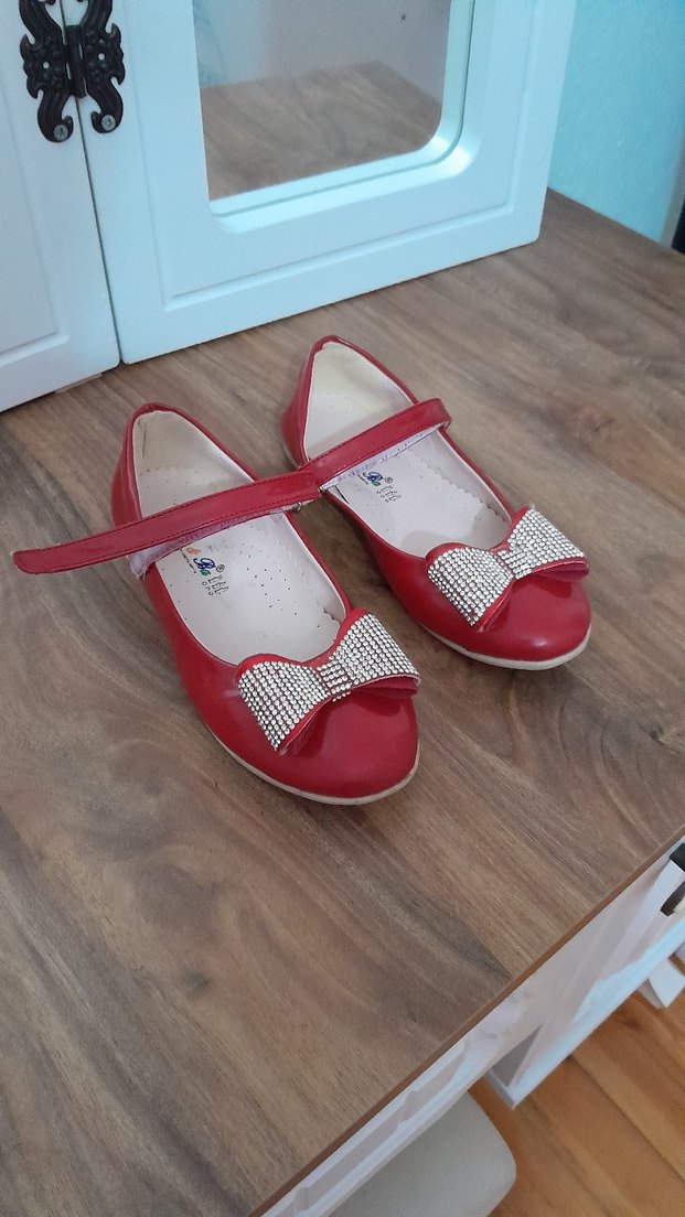 Kız Çocuk Kırmızı Fiyonklu Babet