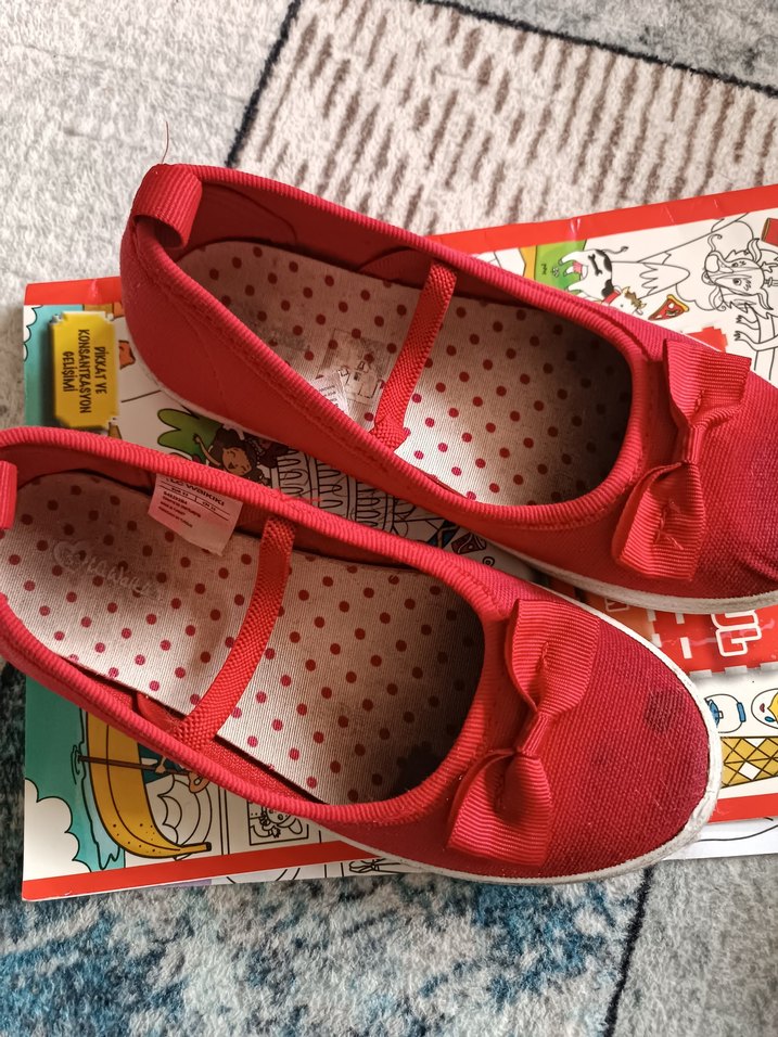 Kırmızı renkte, fiyonk detaylı kız çocuk babet ayakkabılar. Renkli baskılı iç yüzeyi ve yumuşak kauçuk malzemesiyle bohem retro tarzını yansıtıyor.sorunsuz yırtık sökük yok 33 numara #klasik #ayakkabı #babet #terlik #sandalet #bot #yağmur #çizmesi #spor #ayakkabı #dolgu #topuk #topuksuz #espadril #oxford #loafer #