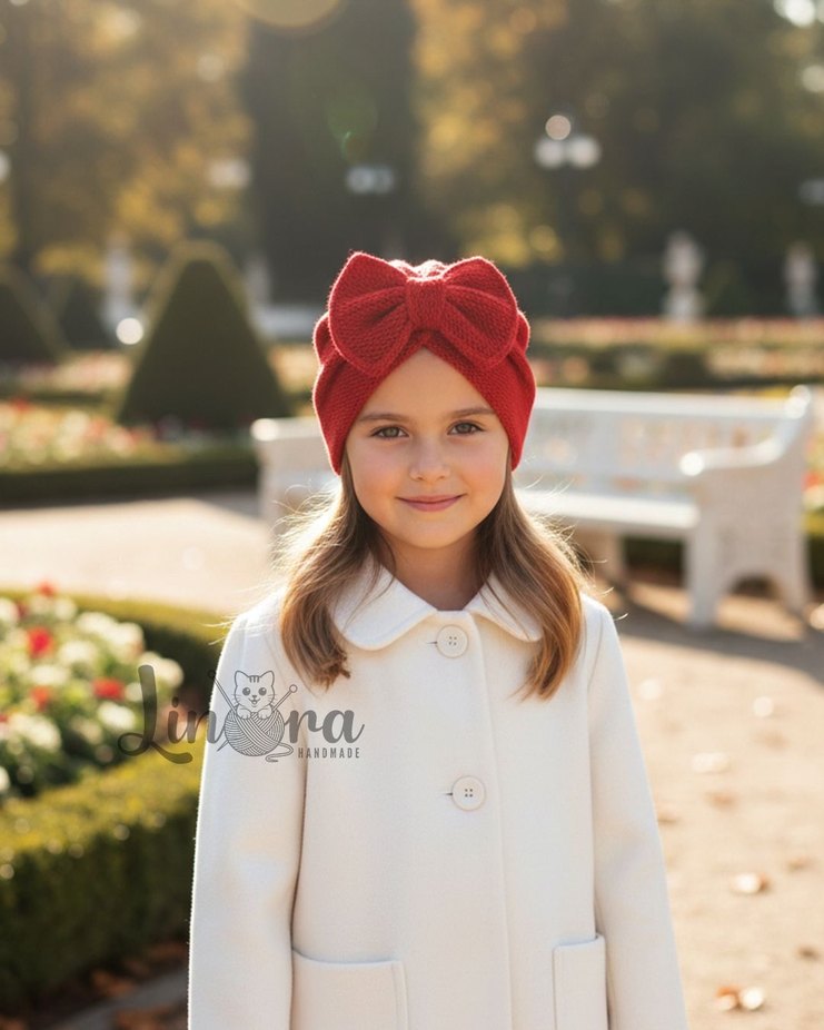 Kırmızı renkli, fiyonk detaylı, yumuşak ve sıcak dokulu çocuk bere. Düz ve sokak tarzında tasarlanmıştır.