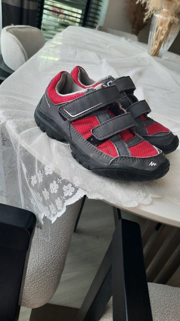 Kız çocukları için cırt cırtlı, kırmızı ve gri renklerde, dayanıklı kauçuk tabanlı biker tarzı spor ayakkabılar. Desensiz ve trend bir görünüme sahiptir.