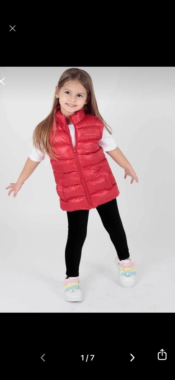 Kız çocuklar için kırmızı, kalın ve kolsuz yelek. Yuvarlak yaka ve velcro kapama özelliği vardır. Rahat ve sıcak dokulu kumaştan üretilmiştir.