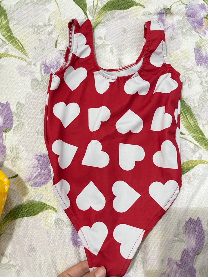 Kız Çocuk Kırmızı Kalp Desenli Mayo