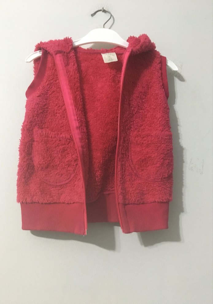 Kız Çocuk Kırmızı Kapüşonlu Kürklü Yelek