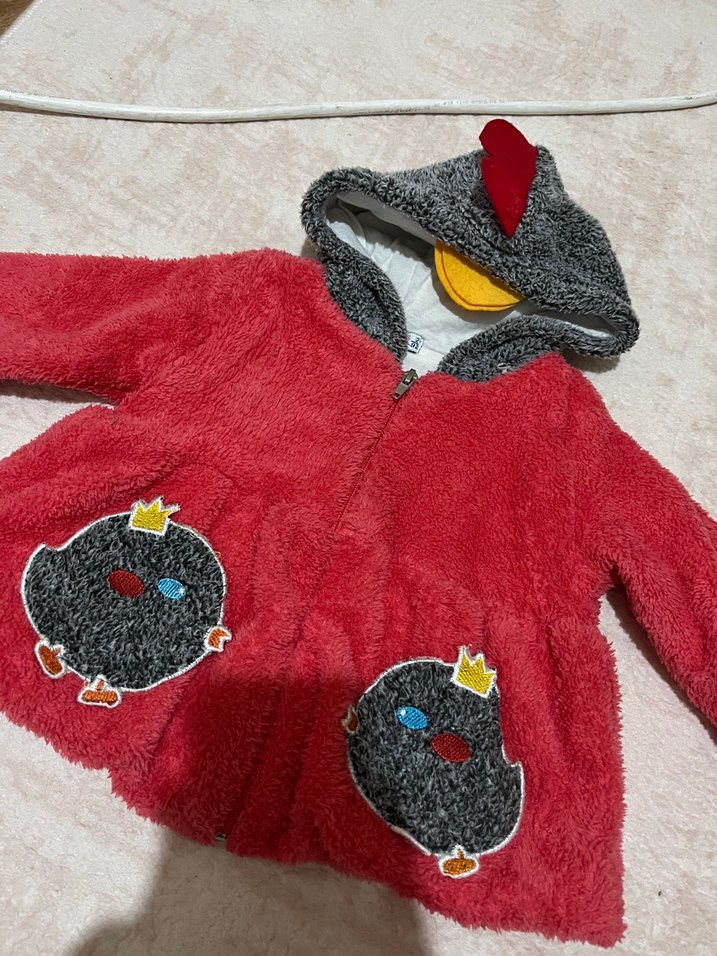 Kapüşonlu, nakış detaylı, yumuşak ve sıcak kumaştan yapılmış kırmızı kız çocuk ceketi. Modern ve rahat kesimle hazırlanmıştır. 1 ve 1,5 yaş için uygundur bi kaç sefer kullanıldı marka temsilidir