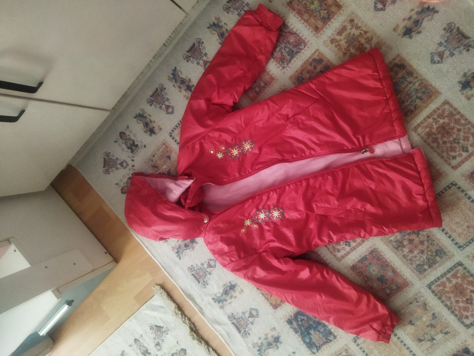 Sentetik kumaştan, nakış işlemeli kapüşonlu kız çocuk montu.hiç bir yırtığı söküğü yok