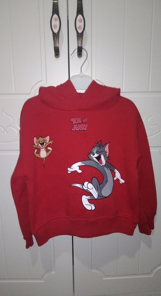 Kız Çocuk Kırmızı Kapüşonlu Tom ve Jerry Sweatshirt