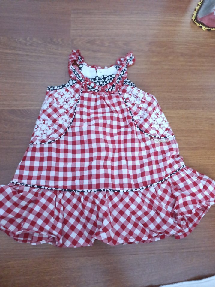 Kız çocuklar için kolsuz, bol kesim elbise. Canlı kırmızı kareli deseni ve volan detaylarıyla bohem tarzı sunar.